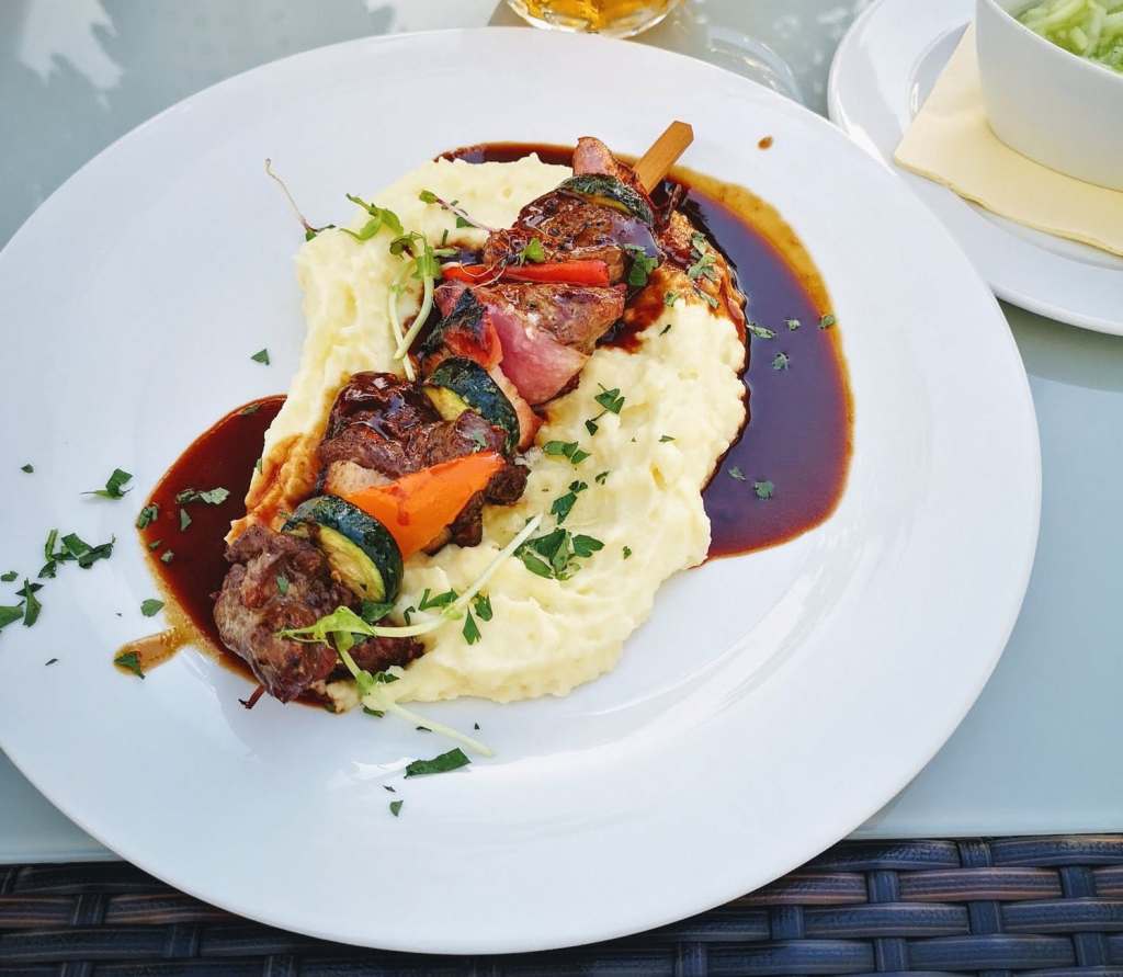 Plat principal : recette brochette de rumsteck aux légumes et purée