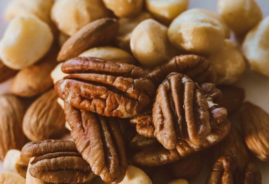 Nous laissons les gâteaux refroidir et nous préparons le glaçage pendant ce temps. Dans un grand bol à l’aide d’un fouet, nous mélangeons la crème épaisse et le beurre ensemble à vitesse moyenne jusqu’à l’obtention d’une consistance lisse. Puis, nous ajoutons le sucre glace, la crème, l’extrait de vanille et une pincée de sel. Nous fouettons à basse vitesse pendant 30 secondes, puis nous augmentons à haute vitesse pendant 3 minutes jusqu’à ce que le tout soit complètement mélangé et crémeux. Nous ajoutons davantage de sucre glace si le glaçage est trop fin et davantage de lait si le glaçage est trop épais. Pour assembler le tout, nous utilisons un grand couteau dentelé. Nous superposons le dessus des gâteaux pour créer une surface plane. Nous mettons une couche de gâteau sur l’assiette à gâteau. Nous couvrons le dessus de glaçage. Nous garnissons la deuxième couche, puis nous recouvrons avec la 3e couche. Si vous le souhaitez, vous pouvez simplement faire cuire un seul gâteau dans un moule et créer une couche épaisse de crème au-dessus. Nous décorons le gâteau avec les noix de pécan grillées. Nous mettons le gâteau au frais pendant une vingtaine de minutes afin qu’il prenne bien avant de le découper.