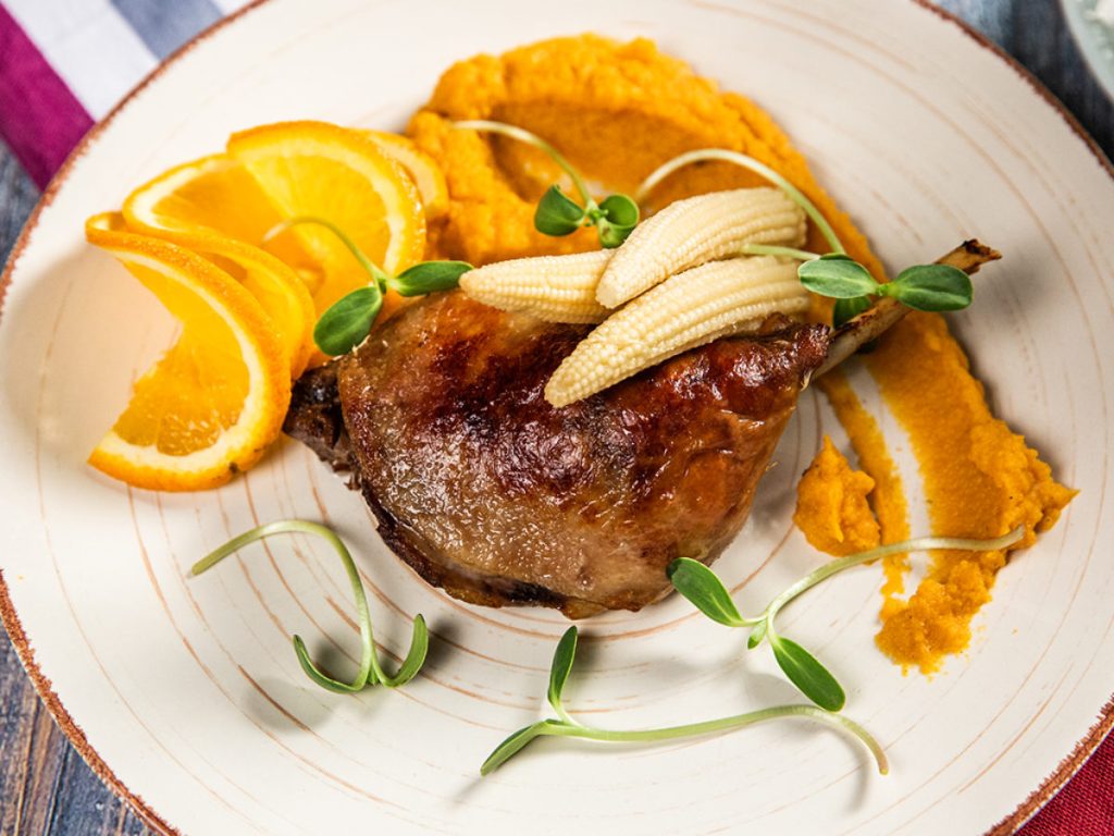 Dans une casserole, commencez par faire revenir les cuisses de canard avec l’huile d’olive pendant 3/4 d’heure. Retirez l’excès de gras de la cocotte. Puis, déglacez avec un verre d’eau. Ajoutez les citrons coupés en rondelles ou des citrons confits, les herbes, le sel et le poivre. Faites mijoter une dizaine de minutes. Accompagnez le plat d’une purée de patates douces.