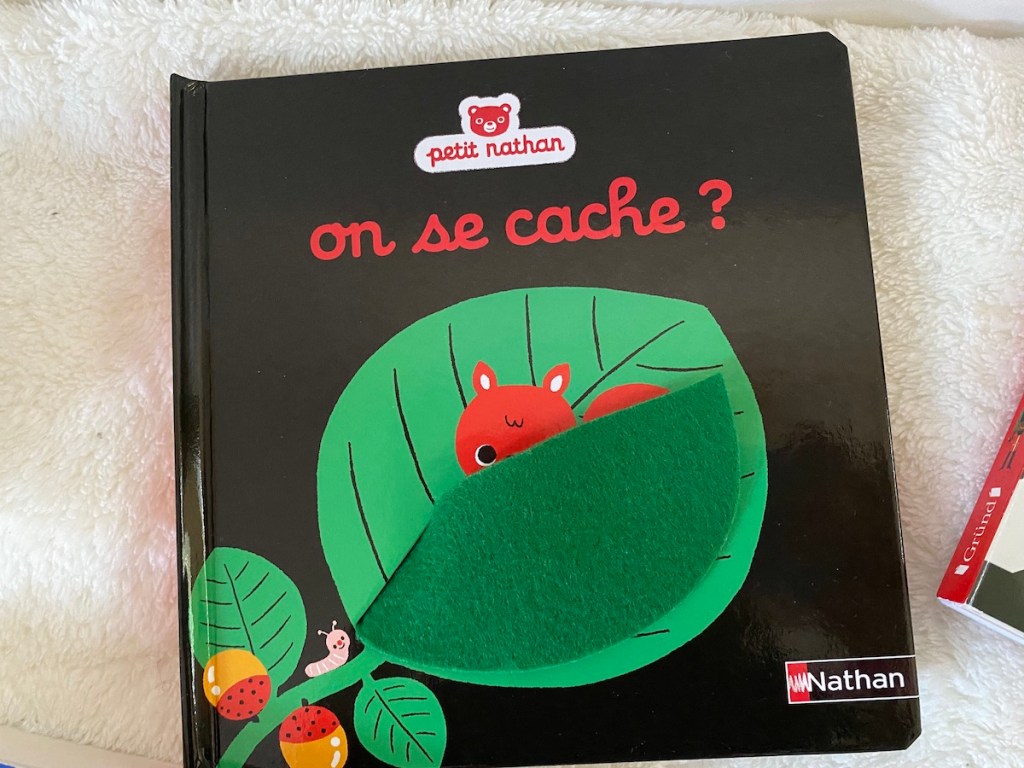Ce livre nous a attiré par ses couleurs mais aussi de par la possibilité d’interagir avec notre bébé. Sous chaque morceau de tissu se cache un petit animal. Et nous l’encourageons à le soulever ce qu’il fait désormais ! Il a pu découvrir un écureuil, une coccinelle ou encore un petit ours. Le livre nous fait jouer à cache cache.